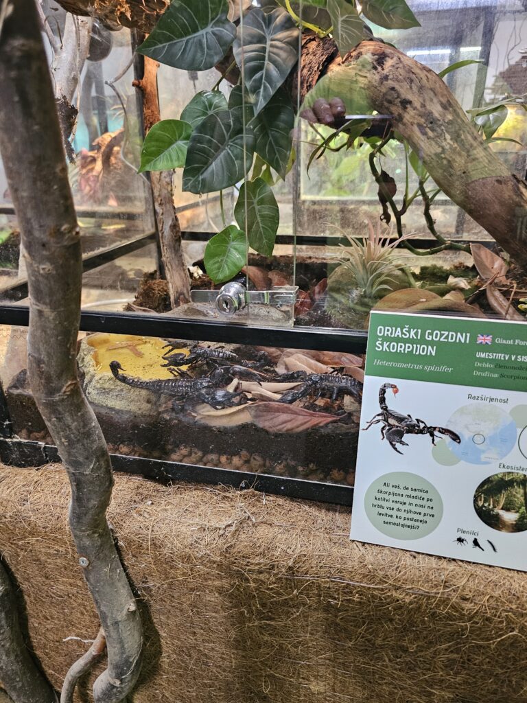 V Tropski hiši v Celju se ponovno razveseljujemo novega življenja – izleglo se je leglo orjaških azijskih gozdnih škorpijonov (Heterometrus spinifer). Ta dogodek predstavlja pomemben mejnik za našo ustanovo, saj gre za eno izmed uspešnih razmnožitev te vrste v umetnem okolju v Sloveniji. Mladi škorpijoni so rezultat skrbnega dela naših oskrbnikov, ki so staršema ustvarili optimalne pogoje, podobne tistim, ki jih ta vrsta potrebuje v tropskih gozdovih jugovzhodne Azije. Tudi škorpijoni so del nove stalne razstave »Svet žuželk in pajkovcev«, ki jo je Tropska hiša odprla z namenom približati obiskovalcem skrivnosten in pogosto nerazumljen svet členonožcev v soboto, 25. oktobra 2025.